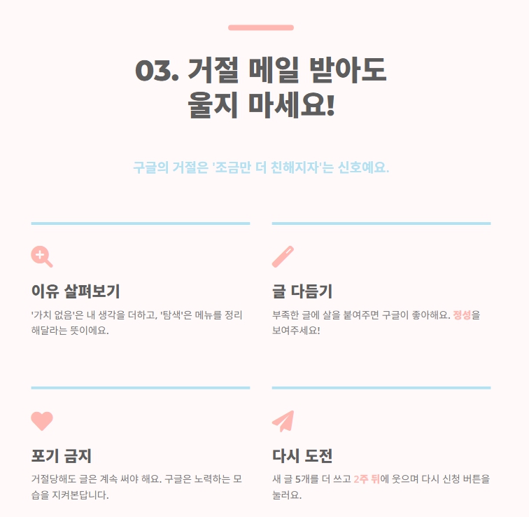 - 1차 거절 후 보완해 승인된 사이트도 있었습니다